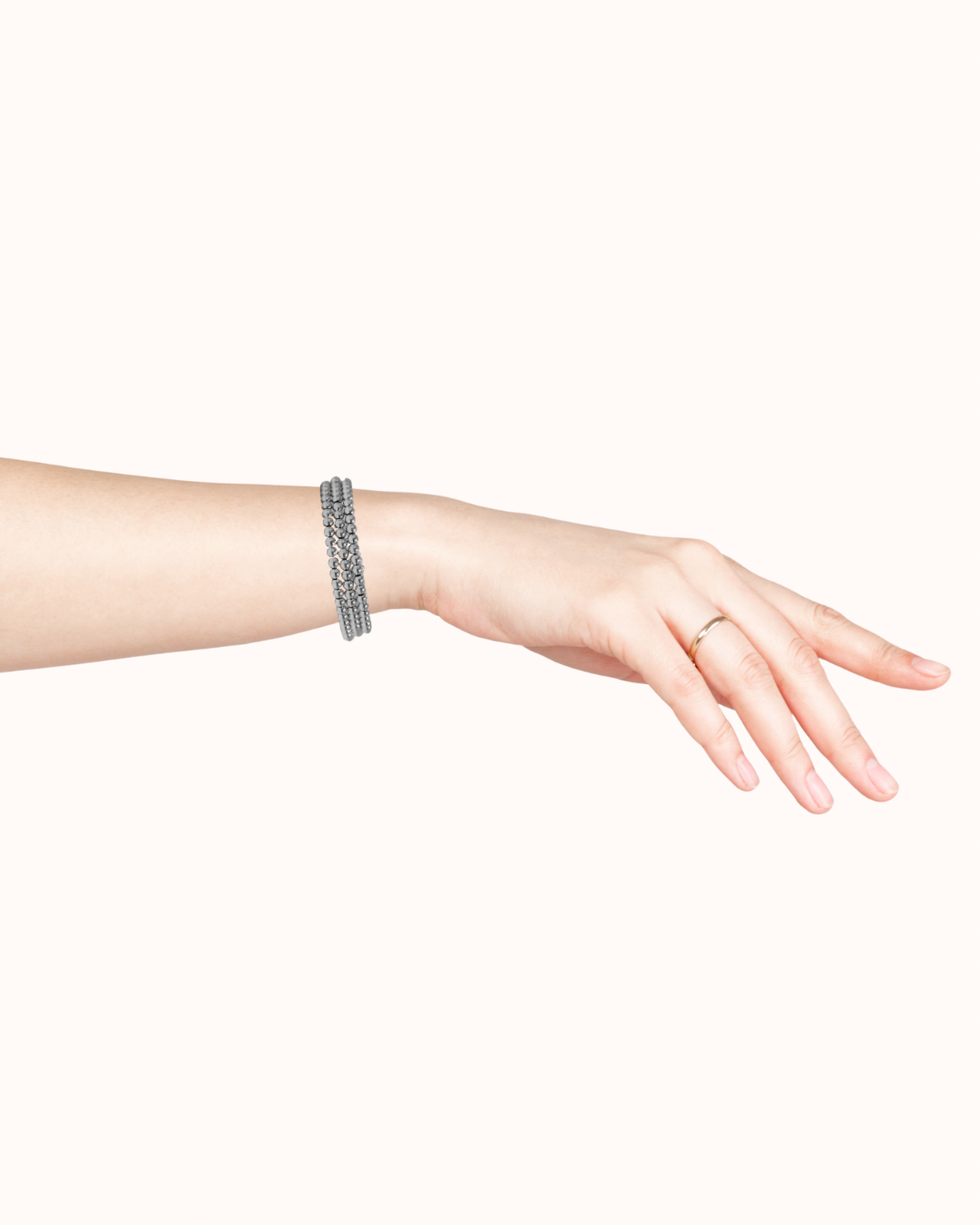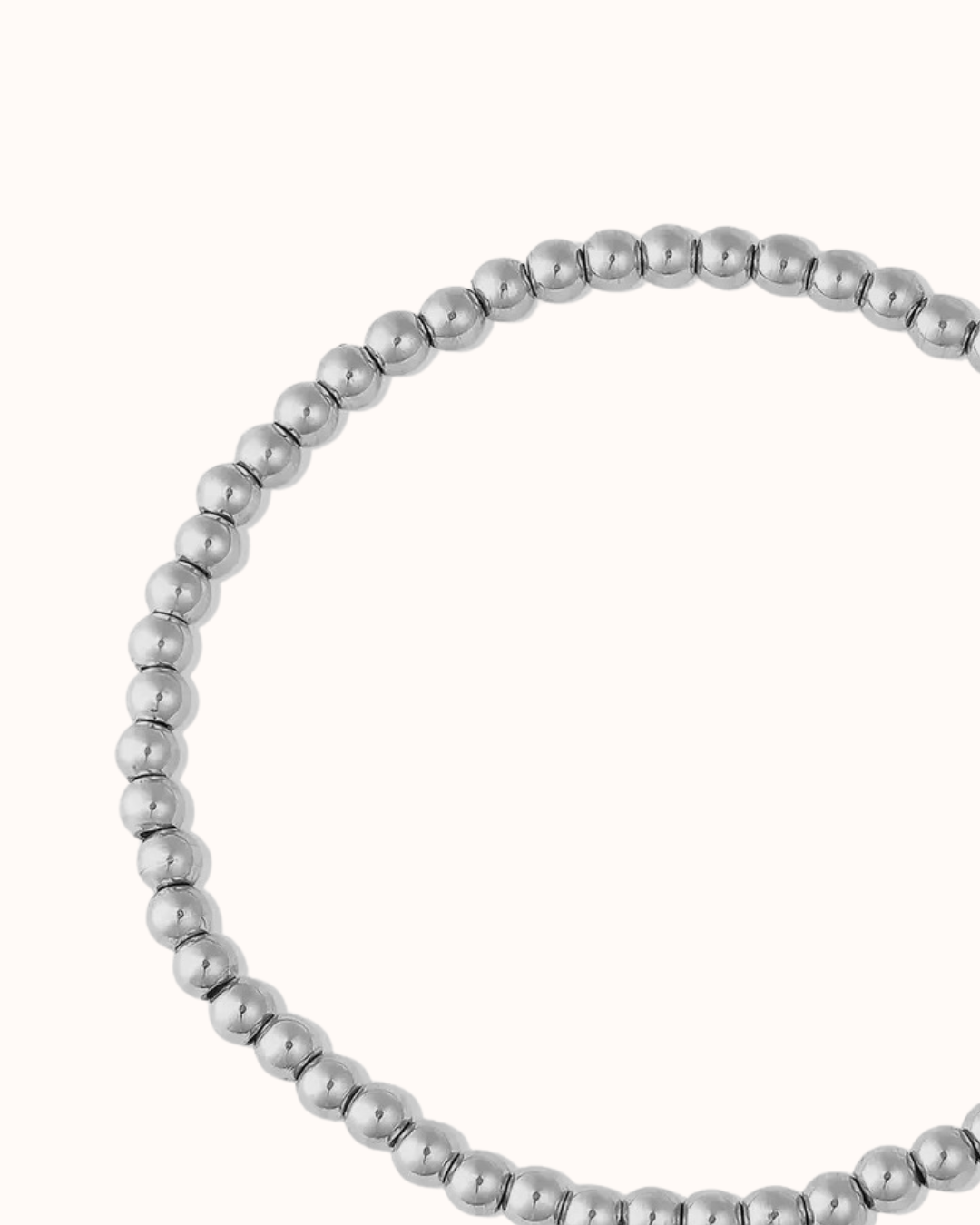 Stainless steel beaded bracelet, stretches, and is durable. Beads are made of 316L surgical grade stainless steel metal, tarnish resistant, hypoallergenic, waterproof, all day wearable.